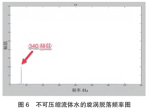 通過(guo)讀取圖(tu)6不可壓(ya)縮流體(ti)水的旋(xuan)渦脫落(luo)頻率圖(tu)最高🏃點(dian)㊙️的頻👈率(lü),可得到(dao)水旋渦(wo)脫落頻(pin)率爲340Hz。