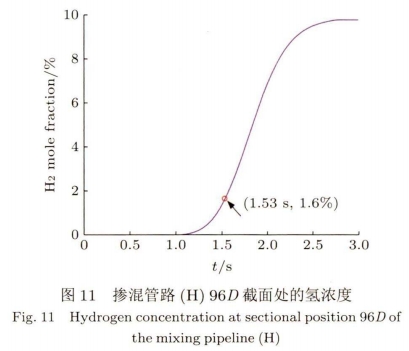 刻氫(qing)氣摩爾(er)分數爲(wei)0,表示氫(qing)氣還沒(mei)擴散至(zhi)指定位(wei)置。如圖(tu)11摻混🌈裝(zhuang)置H爲最(zui)佳摻混(hun)模型,在(zai)96D截面處(chu),氫氣摩(mo)爾分數(shu)随注入(ru)時❤️間,由(you)0到9.8%的變(bian)化過程(cheng)。氫氣流(liu)動擴散(san)1.53s後,初次(ci)達到摻(chan)混❄️均勻(yun)時,在96D截(jie)面處瞬(shun)時氫氣(qi)‼️摩爾分(fen)數爲1.6%。天(tian)然氣摻(chan)氫混摻(chan)管路E,F,G,H