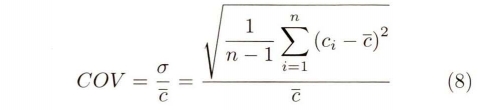 其(qi)中,σ爲标(biao)準偏差(cha),`c爲監測(ce)點測量(liang)值的平(ping)均值,ci爲(wei)第i個監(jian)♈測❗點😍所(suo)得的氣(qi)體速度(du)值。各截(jie)面内設(she)置23個監(jian)測點進(jin)行速度(du)COV的統計(ji)計算。
