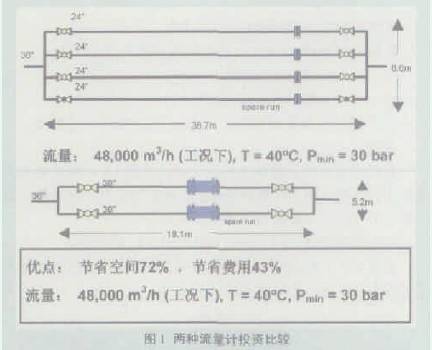 摘要(yao):通過大量(liang)詳實的理(li)論推導、可(ke)信的應用(yong)實例,經✏️過(guo)技術性能(neng)、現場安裝(zhuang)使用、長期(qi)使用、經濟(ji)性幾💛個方(fang)面的比較(jiao)詳細論述(shu)了超聲波(bo)流量計 與(yu) 孔闆流量(liang)計 的優劣(lie),提出高壓(ya)、大流量計(ji)量優先選(xuan)用超聲波(bo)流🈚量計的(de)💁建🌈議。 在我(wo)國長輸和(he)集輸管道(dao)的工程實(shi)踐中,孔闆(pan)流量計特(te)别是高級(ji)孔闆閥長(zhang)期占據統(tong)治地位。而(er)随着🍓我國(guo)石油⭕天然(ran)氣事業的(de)大規模發(fa)展,在高壓(ya)、大流量計(ji)量方面,孔(kong)闆流量計(ji)越來越受(shou)到自身結(jie)構的👨❤️👨限制(zhi)而顯示出(chu)其局限性(xing)。近年☀️來一(yi)些新型的(de)流量計在(zai)國外取得(de)理論和實(shi)踐成功的(de)基礎上,也(ye)積極投身(shen)國内市場(chang),取得一系(xi)列成功經(jing)驗。特别是(shi)超聲波流(liu)量計在高(gao)壓、大流量(liang)☔場合具有(you)🌐明顯優勢(shi),大有取🈲代(dai)高級孔闆(pan)閥之🥰勢。由(you)于認識的(de)誤區㊙️很多(duo)人認爲超(chao)聲波流量(liang)計性能🌈好(hao)但價🌈格昂(ang)貴,事實是(shi)不是❄️如此(ci)呢?通過一(yi)系列比較(jiao)㊙️可以得到(dao)更正确的(de)結論🈲。 1孔闆(pan)流量計的(de)使用要求(qiu) 孔闆流量(liang)計(流量與(yu)差壓的平(ping)方成正比(bi))的使用條(tiao)件、使用✊範(fan)圍和對管(guan)道的要求(qiu): (1)流體:應是(shi)單相、均質(zhi)的牛頓流(liu)體,在通過(guo)節流裝置(zhi)時不💔發生(sheng)相變和析(xi)出雜質,在(zai)節流裝置(zhi)中不得有(you)任何形式(shi)的物質黏(nian)附或聚集(ji)。 (2)管道:僅适(shi)用于圓管(guan),管徑大小(xiao)有一定限(xian)制,上下遊(you)🐇有🛀🏻很長的(de)直管段,而(er)且節流件(jian)上遊10D、下遊(you)4D直管段的(de)🍉内表面粗(cu)糙度🐇、圓度(du)要嚴格符(fu)合具體規(gui)定。 (3)流态:流(liu)動應是連(lian)續、穩定的(de),不是脈動(dong)流;在受到(dao)節流☔件💰影(ying)響前已形(xing)成典型的(de)、充分發展(zhan)的流速分(fen)布(紊流速(su)度分布),流(liu)線與管軸(zhou)線平行,不(bu)得爲旋轉(zhuan)流。 2技術性(xing)能的比較(jiao)(見表 1)2.1量程(cheng)比低 由于(yu)結構特點(dian),孔闆流量(liang)計是通過(guo)節流件來(lai)完成❄️測量(liang)的♊,所👌以❄️其(qi)量程比通(tong)常隻有1:3,最(zui)高可達1:10,而(er)超聲✔️波流(liu)量計沒有(you)任何阻流(liu)件,其量程(cheng)比可達1:200。 這(zhe)兩個數據(ju)表明:如果(guo)實現一種(zhong)測量方案(an),假定其流(liu)量範圍是(shi)從1m3/h~40m3/h,使用超(chao)聲波流量(liang)計隻需要(yao)一路工藝(yi)計量回💃路(lu)就可以實(shi)現,如果采(cai)用孔闆流(liu)量計,需📞要(yao)多路才能(neng)實現。 2.2壓損(sun) 由于孔闆(pan)流量計的(de)結構有阻(zu)流件,超聲(sheng)波流量計(ji)沒有阻👅流(liu)✏️件,那麽顯(xian)而易見:孔(kong)闆流量計(ji)的壓損很(hen)大,超聲波(bo)流量計壓(ya)損實際可(ke)以忽略不(bu)計。節流裝(zhuang)置能耗計(ji)算如下: 以(yi)下以1個典(dian)型用戶用(yong)氣參數進(jin)行能耗計(ji)算:用氣量(liang)160×104m3/d,用氣壓力(li)⭕0.6MPa。 節流裝置(zhi)壓力損失(shi)計算式:(最(zui)大刻度差(cha)壓50kPa、β=0.68) δP=(1-0.24β-0.52β2-0.16β3)ΔP =0.5486×50 =27.43kPa 節流裝(zhuang)置能耗計(ji)算式:(壓縮(suo)機效率η=0.8) W=δp×QV/η =27430×18.5185/0.8 =634953W 計(ji)算耗能費(fei):能源價0.4元(yuan)/kWh 耗能費(年(nian))=(W/1000)×(運行時數(shu)/年)×(元/kWh) =(634953/1000)×365×24×0.4 =2224876(元/年(nian)) 該計算僅(jin)隻是能耗(hao)損失,不包(bao)括壓縮機(ji)運行等費(fei)用。 2.3精度 孔(kong)闆流量計(ji)的計量精(jing)度理論上(shang)可以達到(dao)1%,但是通過(guo)大量的實(shi)踐證明,由(you)于孔闆流(liu)量計抗幹(gan)擾能力較(jiao)差,現場精(jing)度最高能(neng)達到2%,一般(ban)情況下在(zai)3%左右。 超聲(sheng)波流量計(ji)的精度則(ze)可以達到(dao)0.5%甚至更高(gao)。假定某個(ge)計🍉量㊙️站🆚的(de)輸氣量爲(wei)350萬Nm3/天,工業(ye)用氣每标(biao)方的價格(ge)爲0.6元,費用(yong)偏差比較(jiao)㊙️見表2。 由此(ci)可見選擇(ze)兩種不同(tong)的計量儀(yi)表,對于測(ce)量的影響(xiang)✉️會有多大(da)。 2.4測脈動流(liu) 由于孔闆(pan)流量計是(shi)靠孔闆前(qian)後的差壓(ya)信号來實(shi)現流量測(ce)🔆量📧的,脈動(dong)流會使孔(kong)闆前後的(de)差壓不準(zhun),所以孔闆(pan)🔞流量計不(bu)适合測脈(mo)動流,而超(chao)聲波流量(liang)🈲計可以🆚測(ce)量脈動流(liu)的👨❤️👨強度并(bing)消除其幹(gan)擾,所以它(ta)适合測脈(mo)動流。 2.5測雙(shuang)向流 孔闆(pan)流量計依(yi)據一個節(jie)流元件來(lai)實現測量(liang)目的,這個(ge)節流元件(jian)具有嚴格(ge)的方向性(xing),因此孔闆(pan)流量計無(wu)法測雙向(xiang)流。超聲波(bo)流量計隻(zhi)與超聲信(xin)号在流體(ti)中♋的傳播(bo)時間有關(guan),因此可以(yi)測✊雙向流(liu)。 2.6測濕氣體(ti) 孔闆流量(liang)計不适合(he)測量濕氣(qi)體;若被測(ce)氣體爲濕(shi)氣體,那麽(me)在孔闆流(liu)量計的前(qian)端容易積(ji)液,使得上(shang)下遊差壓(ya)産生變化(hua),而孔🎯闆流(liu)量計正是(shi)根據上下(xia)遊的壓差(cha)來測量流(liu)量的,如果(guo)🚩差壓産生(sheng)變化,則孔(kong)闆流量計(ji)不可能準(zhun)确測量氣(qi)