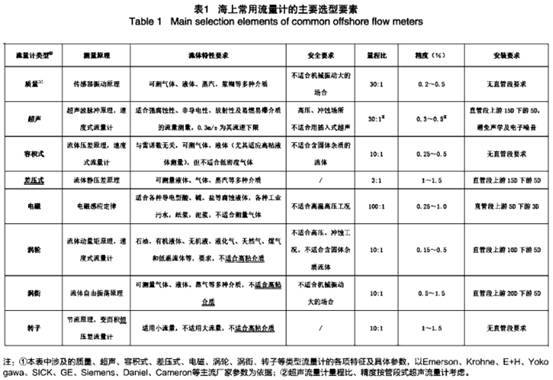 以表(biao)1列舉(ju)的海(hai)上平(ping)台常(chang)用的(de)流量(liang)計爲(wei)基礎(chu),針對(dui)上述(shu)工藝(yi)流程(cheng)參數(shu)開展(zhan)流量(liang)計選(xuan)型具(ju)體工(gong)作。