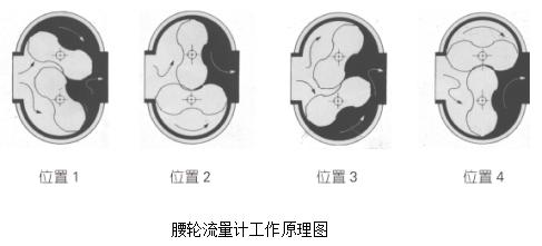 智能(neng)氣體腰輪(lun)(羅茨)流量(liang)計,主要由(you)殼體、共轭(e)轉子、計數(shu)器和智能(neng)流量轉換(huan)器等部件(jian)構成。裝于(yu)計量室内(nei)的一對共(gong)轭轉子在(zai)流通氣體(ti)的出入口(kou)壓差(P入>P出(chu))作用下,通(tong)過精密加(jia)工的調校(xiao)齒輪使轉(zhuan)子保持正(zheng)确的相對(dui)位置。轉子(zi)間、轉子與(yu)殼體、轉子(zi)與牆闆間(jian)保持最佳(jia)工作間隙(xi),實現了連(lian)續的無接(jie)觸密封。轉(zhuan)子每轉動(dong)一周,則輸(shu)出四倍計(ji)量室有效(xiao)容積的氣(qi)體,轉子的(de)轉數通過(guo)磁性密封(feng)聯軸裝置(zhi)及減速機(ji)構,傳遞到(dao)智能流量(liang)轉換器,從(cong)而顯示輸(shu)出氣體的(de)累計體積(ji)量。其計量(liang)過程和工(gong)作原理如(ru)圖3-2所示(圖(tu)中僅表示(shi)了四分之(zhi)一周期)。