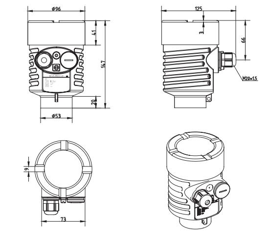 SKD54A高溫(wen)喇叭天(tian)線雷達(da)物位計(ji)外形尺(chi)寸圖