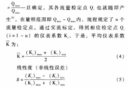 在(zai)Q<Qmin或Q>Qmax,即(ji)在測(ce)量範(fan)圍之(zhi)外誤(wu)差将(jiang)超過(guo)δmax。這就(jiu)是說(shuo)雖然(ran)渦輪(lun)⭕流量(liang)傳感(gan)器具(ju)有很(hen)好的(de)重複(fu)性,但(dan)是由(you)于電(dian)脈沖(chong)信号(hao)頻率(lü)F與體(ti)積流(liu)量♈Q之(zhi)間是(shi)非線(xian)性的(de),按照(zhao)常規(gui)的平(ping)均儀(yi)表系(xi)數`K的(de)計算(suan)方法(fa),對于(yu)一定(ding)的誤(wu)差限(xian)士A,由(you)于非(fei)線性(xing)誤差(cha)的存(cun)在使(shi)得渦(wo)輪流(liu)量傳(chuan)感器(qi)的工(gong)作範(fan)圍隻(zhi)能限(xian)定在(zai)Qmin~Qmax之内(nei)。