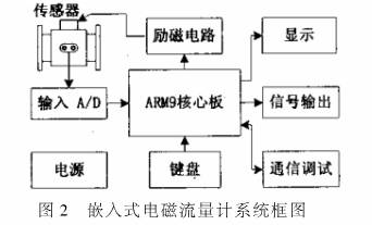 電磁(ci)流量(liang)計由(you)測量(liang)裝置(zhi)和電(dian)路兩(liang)部分(fen)組成(cheng),電路(lu)部分(fen)主要(yao)☂️由檢(jian)測輸(shu)入模(mo)塊、勵(li)磁輸(shu)出模(mo)塊、流(liu)量輸(shu)出模(mo)塊、圖(tu)形顯(xian)示模(mo)塊、鍵(jian)盤模(mo)塊、通(tong)信及(ji)調試(shi)接口(kou)‼️、電源(yuan)模塊(kuai)、以及(ji)最重(zhong)要的(de)基于(yu)🌍ARM9嵌入(ru)式系(xi)統[2]的(de)核心(xin)闆組(zu)成。圖(tu)2給出(chu)了嵌(qian)入式(shi)電磁(ci)流量(liang)計的(de)系統(tong)框圖(tu)。圖2嵌(qian)入式(shi)電磁(ci)流量(liang)計系(xi)✂️統框(kuang)圖。