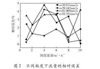 令(ling)仿真(zhen)流量(liang)爲q,則(ze)相對(dui)誤差(cha)δy=1(qf-qv0)I/qy0×100%,不同(tong)粘度(du)下流(liu)量的(de)相對(dui)誤差(cha)如圖(tu)2所示(shi)。