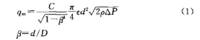 式(shi)中:qm爲(wei)質量(liang)流量(liang),kg/s;C爲流(liu)出系(xi)數;D爲(wei)管道(dao)内徑(jing),m;ε爲節(jie)流件(jian)正端(duan)取♈壓(ya)口平(ping)面上(shang)的氣(qi)體膨(peng)脹系(xi)數;d爲(wei)工作(zuo)條件(jian)下節(jie)流🐪件(jian)的開(kai)孔直(zhi)徑,m;ρ爲(wei)節流(liu)件人(ren)口端(duan)流體(ti)密度(du),kg/m³.