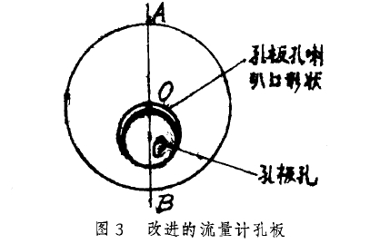 不(bu)論是孔闆(pan)生産單位(wei),還是自己(ji)加工。都是(shi)圓孔在孔(kong)闆♌中心,并(bing)且安裝時(shi),務必使其(qi)孔心與管(guan)道的軸心(xin)保持一緻(zhi),這就是造(zao)成孔闆流(liu)量計被堵(du)塞的原因(yin)。所以,若要(yao)使雜質順(shun)利通過孔(kong)闆,就要對(dui)孔闆和☀️安(an)裝方法🛀作(zuo)一些改進(jin),改進後的(de)孔闆及安(an)裝如圖🎯3、圖(tu)4。孔的中心(xin)在整個2孔(kong)闆外徑三(san)之二處爲(wei)宜(即O'A=2/3AB),其喇(la)叭口也稍(shao)作改進。