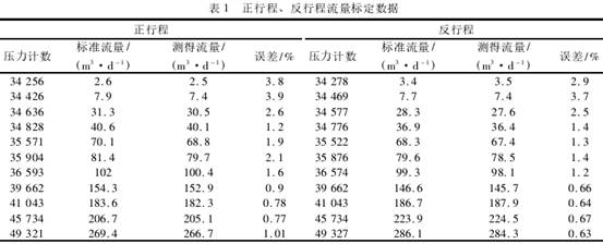 在室溫(wen)25℃,流量0~300m3/d對(dui)流量計(ji)進行标(biao)定,标準(zhun)流量計(ji)的量🈲程(cheng)範圍1.5~450m3/d,精(jing)度☎️0.1%。在圖(tu)10所示的(de)流量計(ji)标定實(shi)驗平台(tai)上🍓,分别(bie)進行正(zheng)行程和(he)反行🏃程(cheng)流量測(ce)試,流量(liang)标定數(shu)據見表(biao)1。