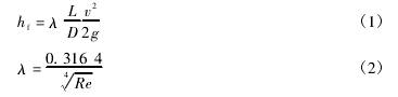 式中(zhong):hf爲沿程(cheng)阻力損(sun)失;λ爲沿(yan)程阻力(li)系數;L爲(wei)流道長(zhang)度;v爲平(ping)均流速(su);D爲流道(dao)直徑;g爲(wei)重力加(jia)速度;Re爲(wei)雷諾數(shu)。
