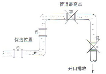電磁流量(liang)計安裝位(wei)置介質不(bu)滿管時,可(ke)采取擡高(gao)☁️流✔️量管後(hou)端⭕管路的(de)方法,使其(qi)滿管,嚴禁(jin)在管道最(zui)☀️高點📞和出(chu)📞水口安裝(zhuang)流量計。(見(jian)圖)