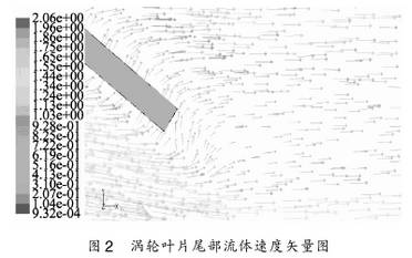 圖2爲(wei)渦輪(lun)葉片(pian)尾部(bu)流體(ti)速度(du)矢量(liang)圖,灰(hui)色部(bu)分爲(wei)葉片(pian)。可以(yi)看出(chu)在葉(ye)片的(de)尾部(bu),流體(ti)出現(xian)了流(liu)動分(fen)離。靠(kao)近葉(ye)輪的(de)流體(ti),其速(su)度可(ke)以認(ren)爲與(yu)葉輪(lun)的轉(zhuan)♍速相(xiang)同,葉(ye)輪的(de)轉速(su)越🌈慢(man),其尾(wei)部的(de)低流(liu)速區(qu)越大(da)。