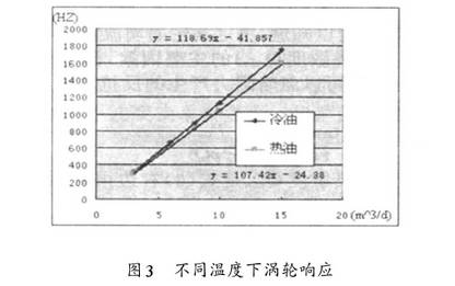 根(gen)據上表(biao)做出油(you)對K值得(de)響應特(te)性曲線(xian),如圖3所(suo)示,冷油(you)(16度)對K值(zhi)的響應(ying)特性,即(ji)y=11869x-41857;熱油(60度(du))對K值的(de)響應特(te)性,即y=107.42x-2438。
