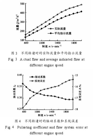 圖(tu)3示出(chu)了發(fa)動機(ji)各轉(zhuan)速時(shi)的實(shi)際流(liu)量和(he)平均(jun)指示(shi)流量(liang),圖4示(shi)出了(le)發動(dong)機各(ge)轉速(su)時的(de)流量(liang)脈動(dong)1系數(shu)和系(xi)統誤(wu)差。