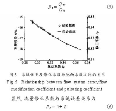 将(jiang)上述(shu)結果(guo)整理(li)後重(zhong)新畫(hua)在圖(tu)5中。圖(tu)中給(gei)出.了(le)系統(tong)誤差(cha)與脈(mo)動系(xi)數之(zhi)間的(de)關系(xi),同時(shi)也給(gei)出了(le)所謂(wei)流量(liang)修正(zheng)系數(shu)與脈(mo)動系(xi)數之(zhi)間的(de)關系(xi),流量(liang)修:正(zheng)系數(shu)F,爲