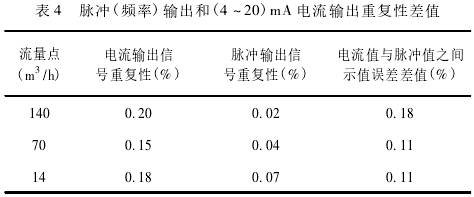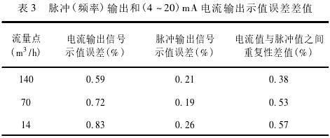 由表(biao)3得出(chu),在140m3/h、70m3/h、14m3/h三(san)個流(liu)量點(dian)下脈(mo)沖(頻(pin)率)輸(shu)出和(he)(4~20)mA電流(liu)輸出(chu)方式(shi)不同(tong)對流(liu)量計(ji)的所(suo)體現(xian)的誤(wu)差也(ye)不一(yi)樣。可(ke)以看(kan)到此(ci)次試(shi)驗電(dian)流信(xin)号輸(shu)出要(yao)比脈(mo)沖輸(shu)出誤(wu)差要(yao)偏大(da)0.3%以上(shang)。
